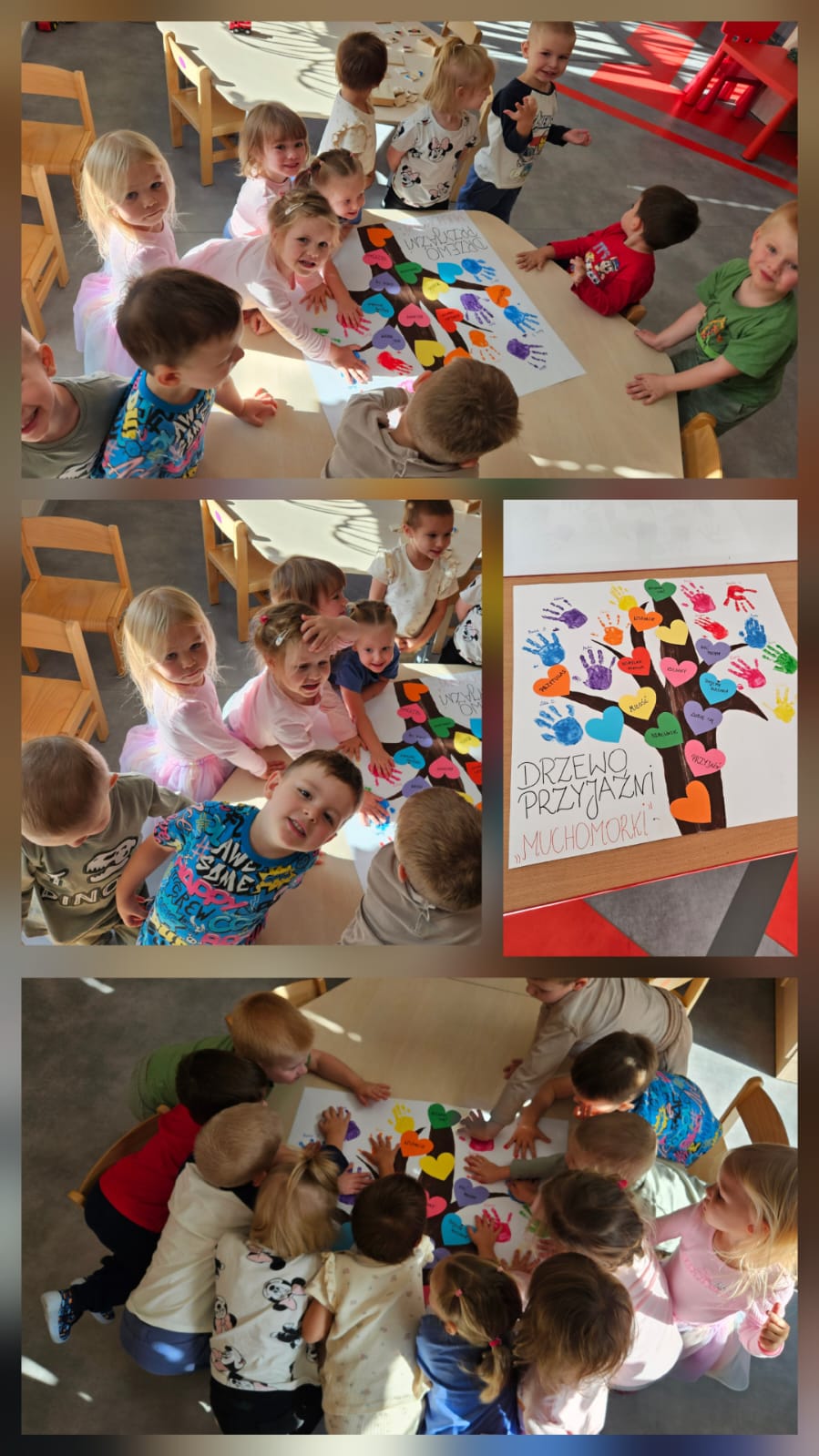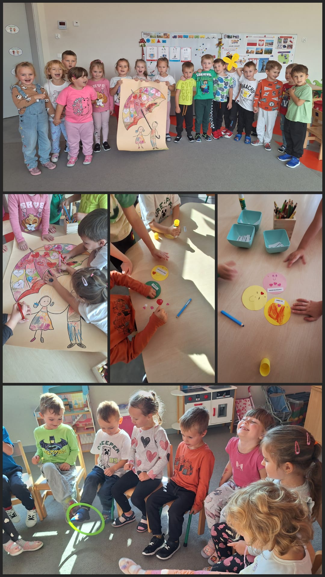 Pierwszego dnia dzieci wysłuchały listu od Ministra Edukacji Narodowej, w którym podkreślono znaczenie wzajemnego szacunku i empatii w grupie rówieśniczej. Przedszkolaki poznały także wzruszającą opowieść podczas zajęć „Serduszko z listków”, a następnie uczestniczyły w zabawie „Krąg wdzięczności” – przekazując sobie piłkę, mówiły miłe słowa do swoich kolegów i koleżanek. Dzień upłynął w atmosferze otwartości i ciepła.