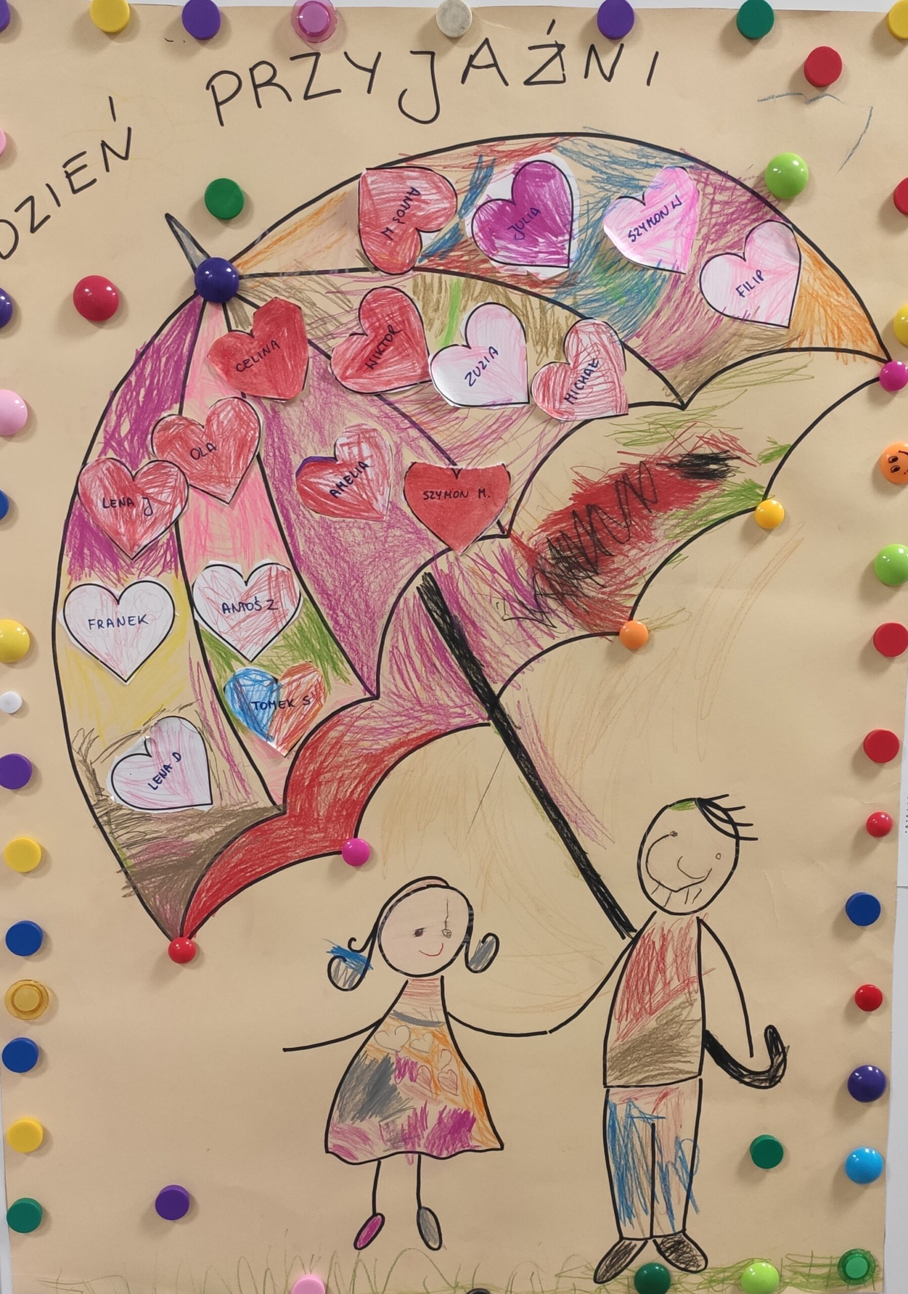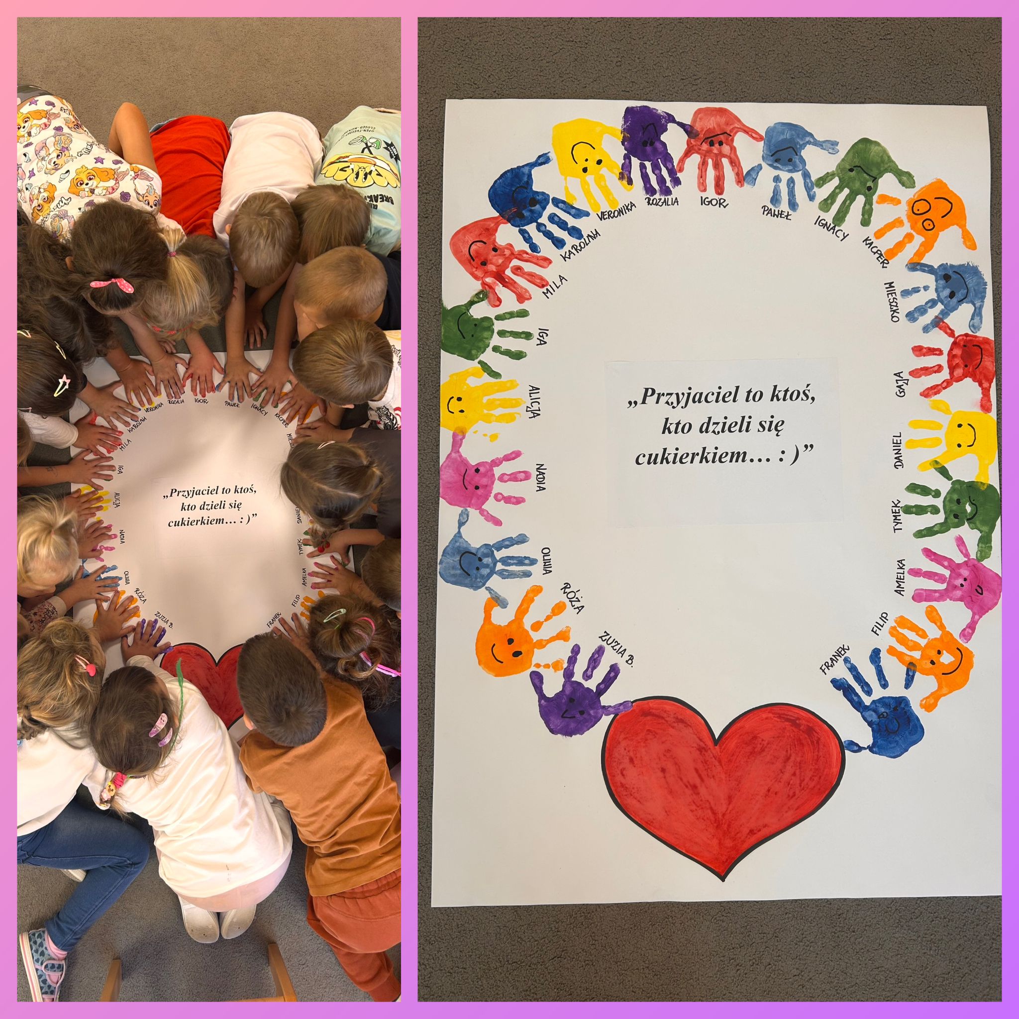 Ostatni dzień projektu poświęcony był przyjaźni. Podczas rozmowy dzieci dowiedziały się, że przyjaciel to ktoś, kto wspiera, bawi się razem i dba o innych. Następnie przedszkolaki wspólnie stworzyły kolorowy „Plakat Przyjaźni”, będący symbolem tego, jak ważne jest bycie razem. W kręgu podsumowały cały tydzień, dzieląc się tym, co im się najbardziej podobało i czego się nauczyły. Rozmowa pokazała, że warto być miłym i życzliwym każdego dnia.
