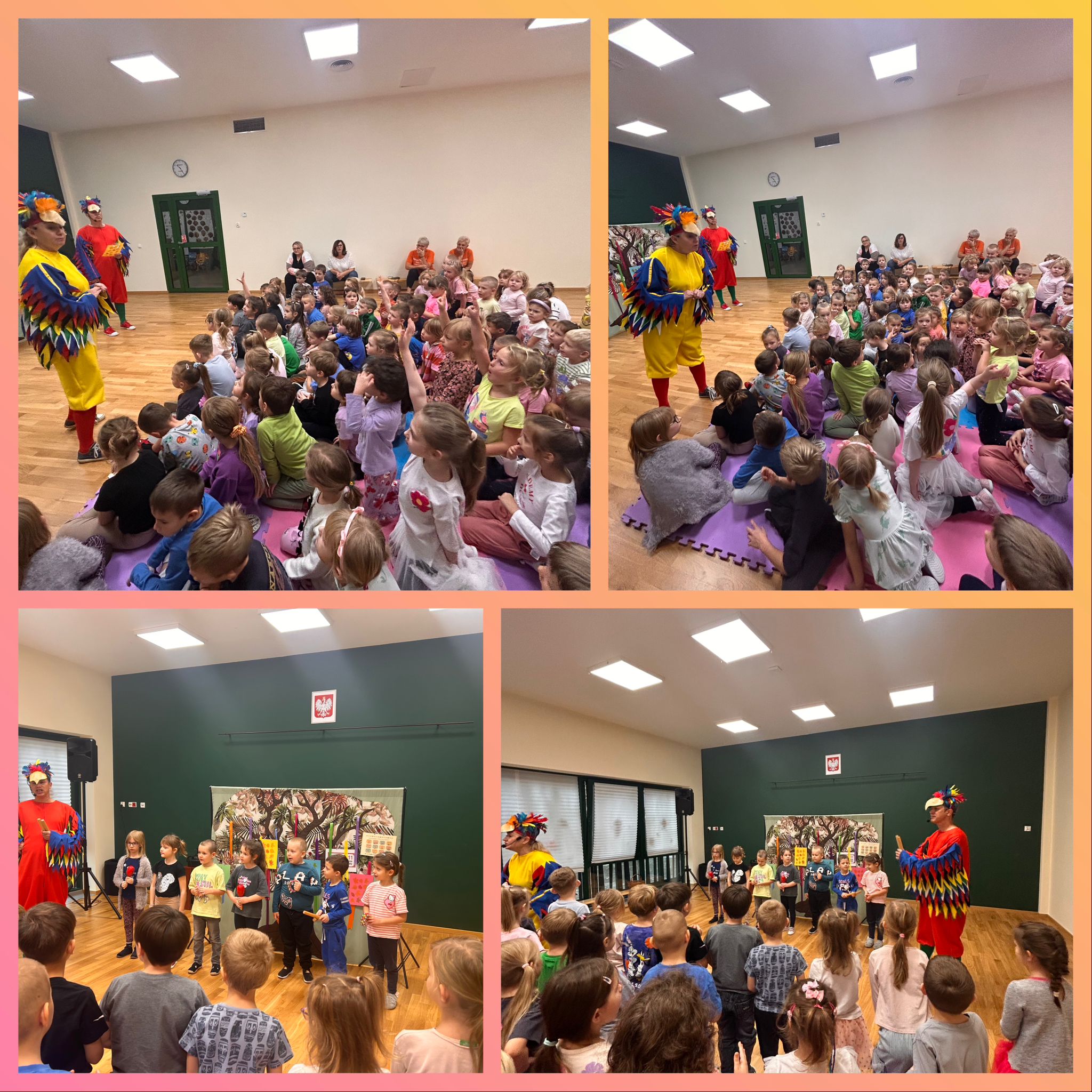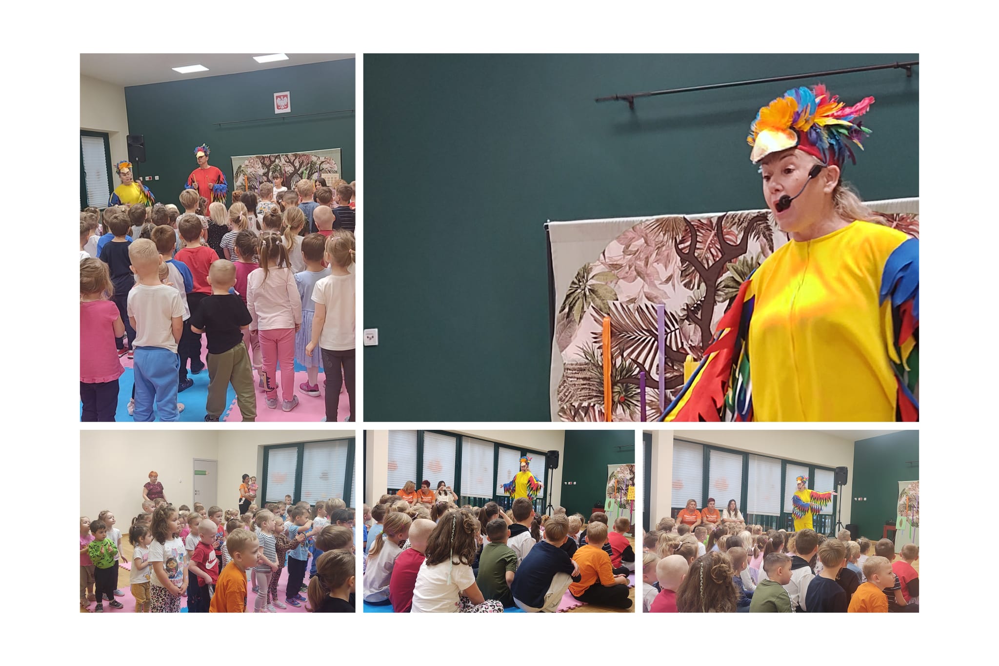 W naszym przedszkolu odbyło się niezwykłe spotkanie z Teatrem Edukacyjnym GABI ART, który zaprezentował spektakl pt. „Drzewo Życzeń, czyli jak Boni i Bongo uczą dzieci ochrony”.