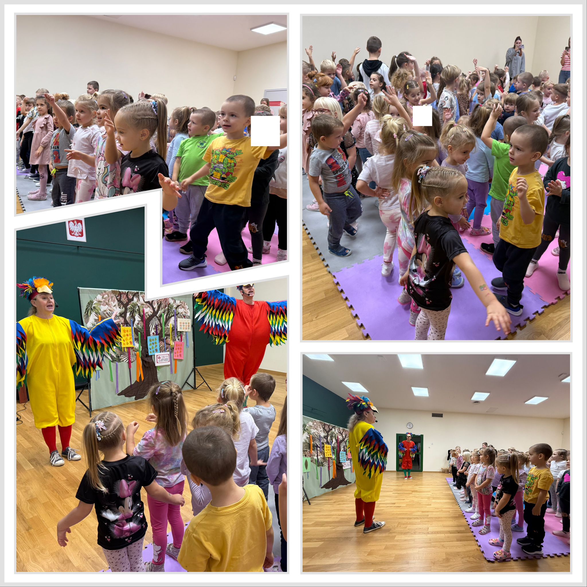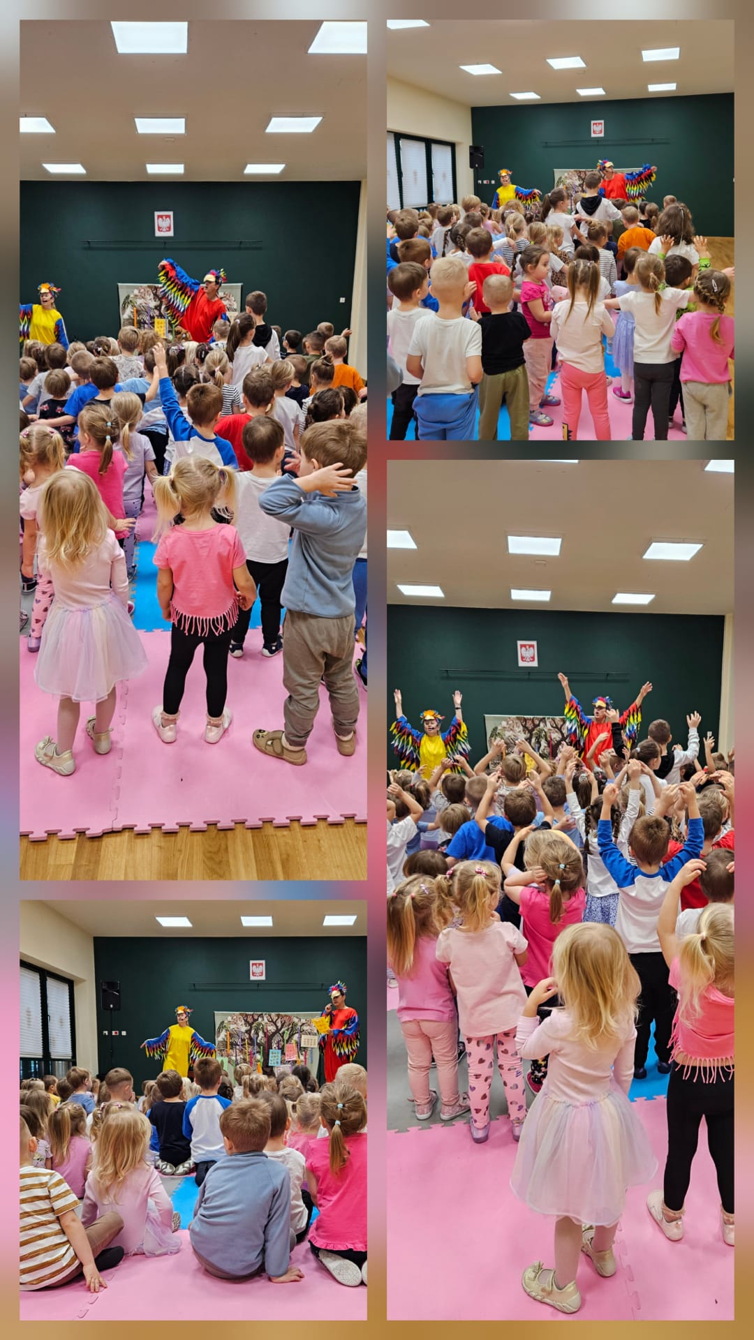 Przedstawienie zabrało naszych przedszkolaków do magicznego świata pełnego barw, emocji i wartościowych przesłań. Bohaterami spektaklu są dwa sympatyczne ptaki – Boni i Bongo, mieszkające w czarodziejskim Drzewie Życzeń. To właśnie tam trafiają listy od dzieci, które przeżywają trudności, doświadczają przemocy lub po prostu potrzebują wsparcia i zrozumienia. Każdy list to mała historia – prośba, marzenie lub wołanie o pomoc. Boni i Bongo z wielką troską czytają każde słowo i wraz z innymi dziećmi starają się pomóc wszystkim autorom listów.