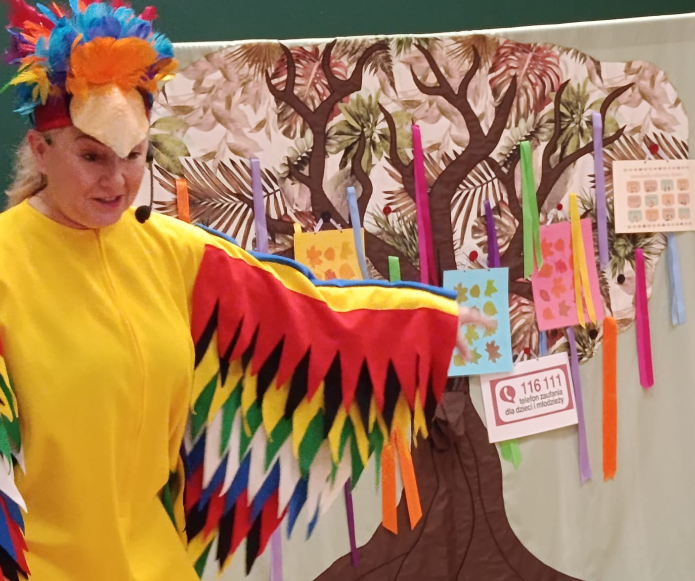 Fabuła przedstawienia, pełna ciepła i empatii, w prosty, a zarazem niezwykle mądry sposób wprowadziła najmłodszych w tematy dotyczące bezpieczeństwa, reagowania na zagrożenia oraz ochrony przed przemocą i agresją. Dzieci dowiedziały się, że zawsze warto mówić o swoich uczuciach, prosić o pomoc i ufać dorosłym, którzy potrafią im pomóc.