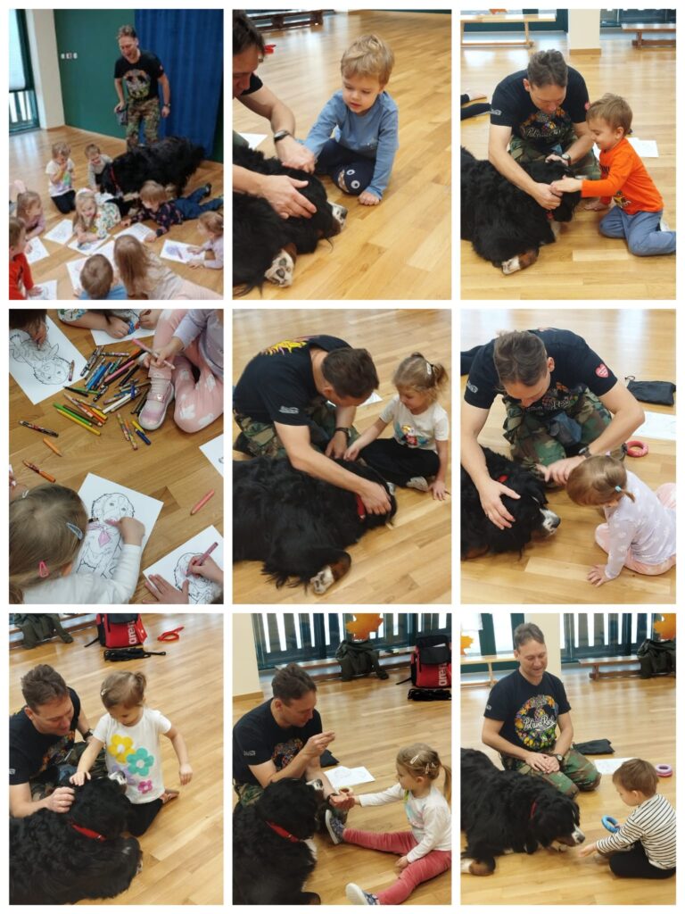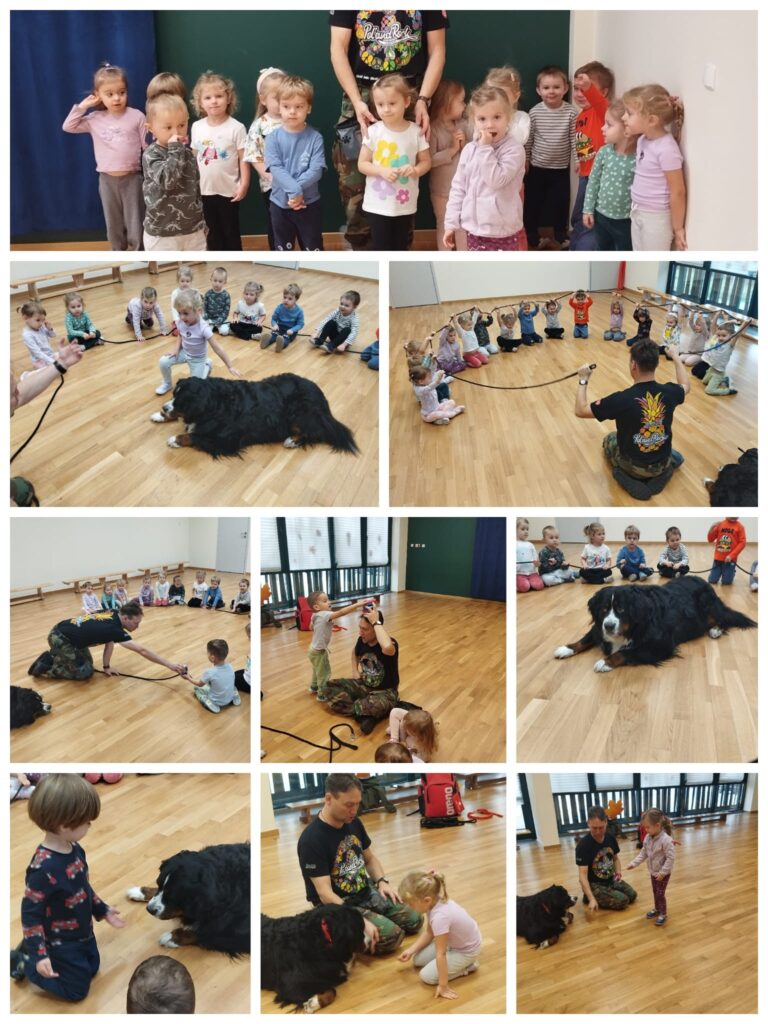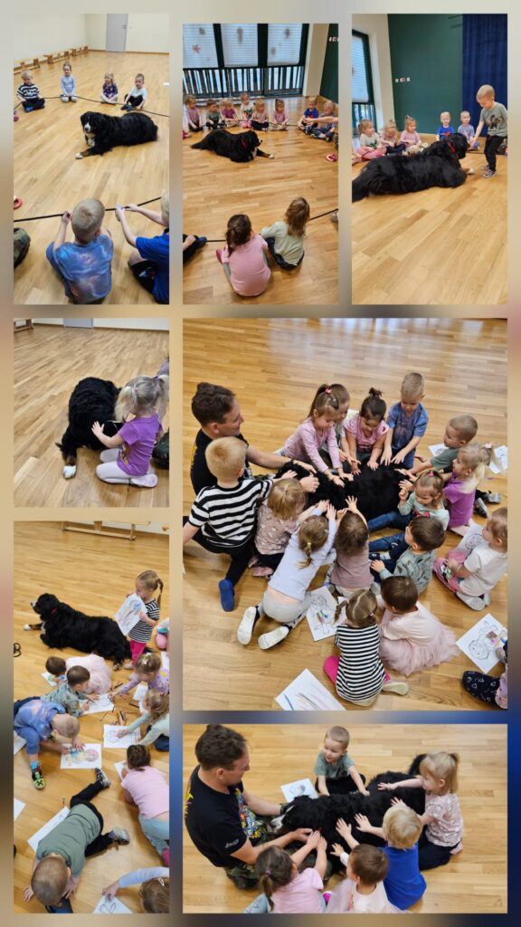W dniu 13 listopada 2025 roku w naszym przedszkolu odbyły się zajęcia z dogoterapii dla młodszych dzieci z grup Muchomorki i Duszki. Spotkanie poprowadził pan dogoterapeuta wraz ze swoim psem. Dogoterapia to zajęcia z psem, które sprawiają wiele radości wszystkim uczestnikom. Jest to forma terapii wykorzystywana m.in. do wsparcia rozwoju emocjonalnego, społecznego oraz edukacyjnego dzieci w wieku przedszkolnym.