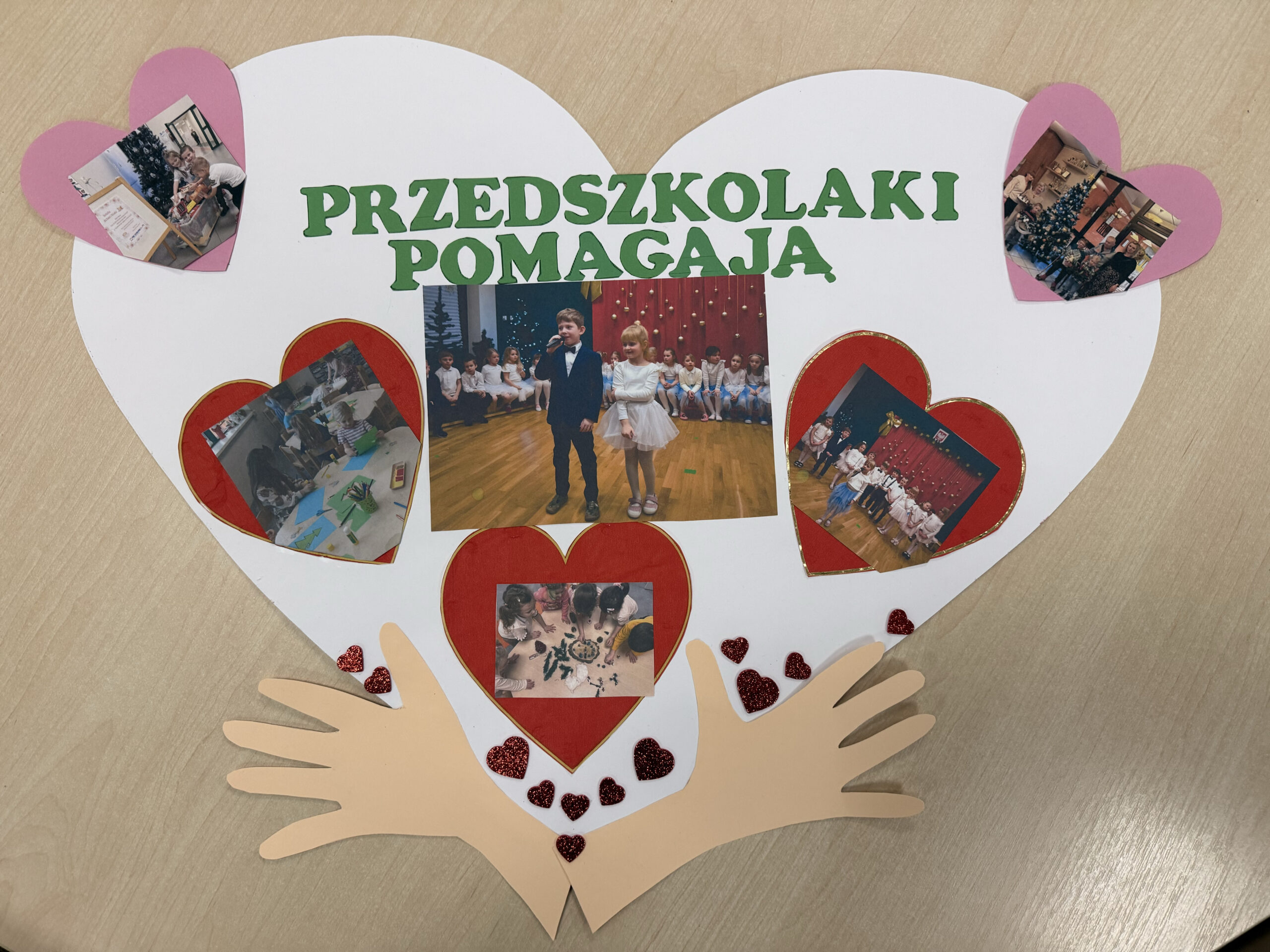Przedszkolaki z zaangażowaniem wykonały świąteczne stroiki dla podopiecznych Domu Pomocy Społecznej „Pod Dębem” w Dąbrowie Górniczej oraz przygotowały kartki świąteczne dla osób samotnych i potrzebujących, przekazane do Centrum Aktywności Obywatelskiej. Odbył się także Koncert kolęd i pastorałek, podczas którego dzieci