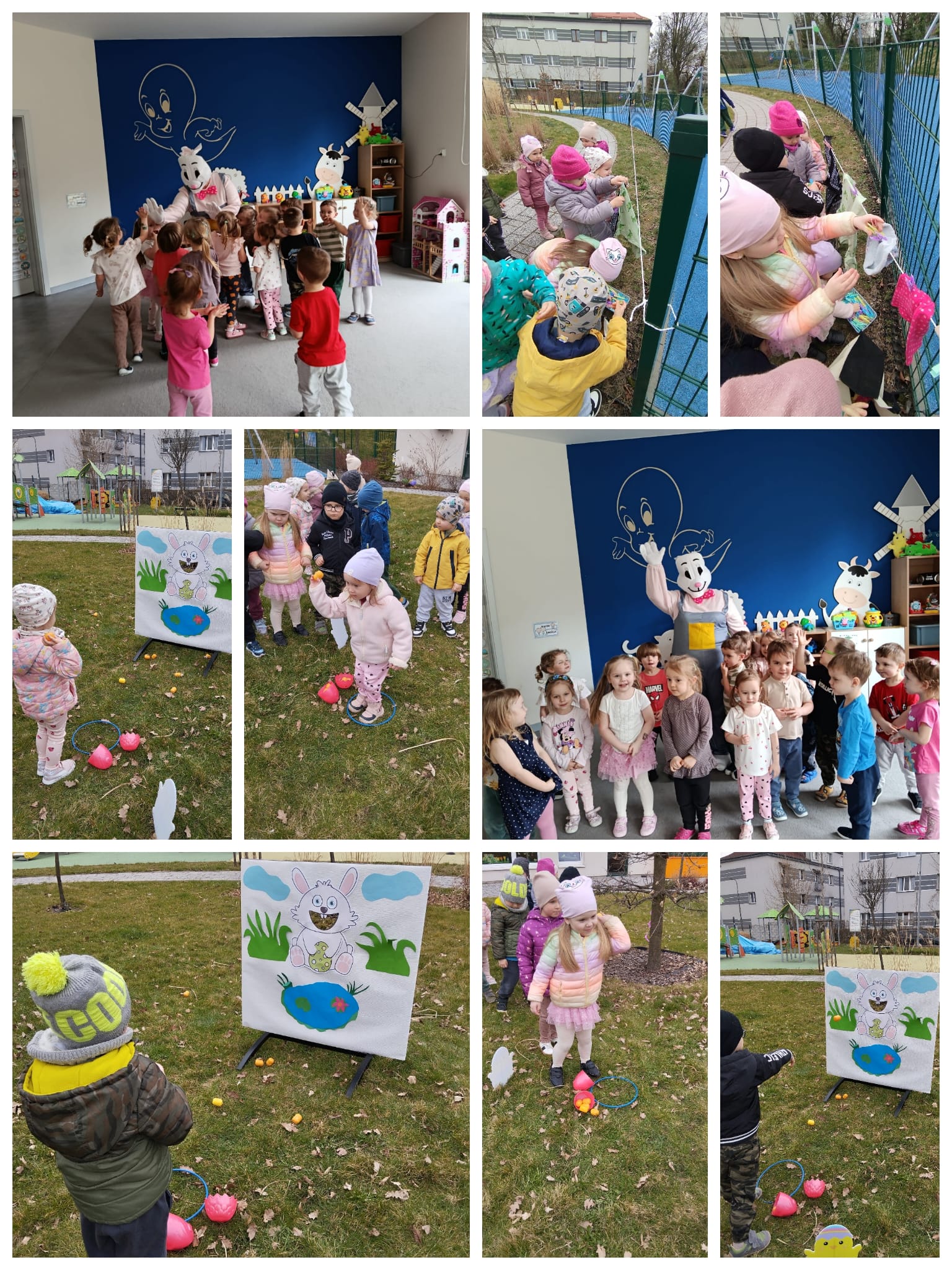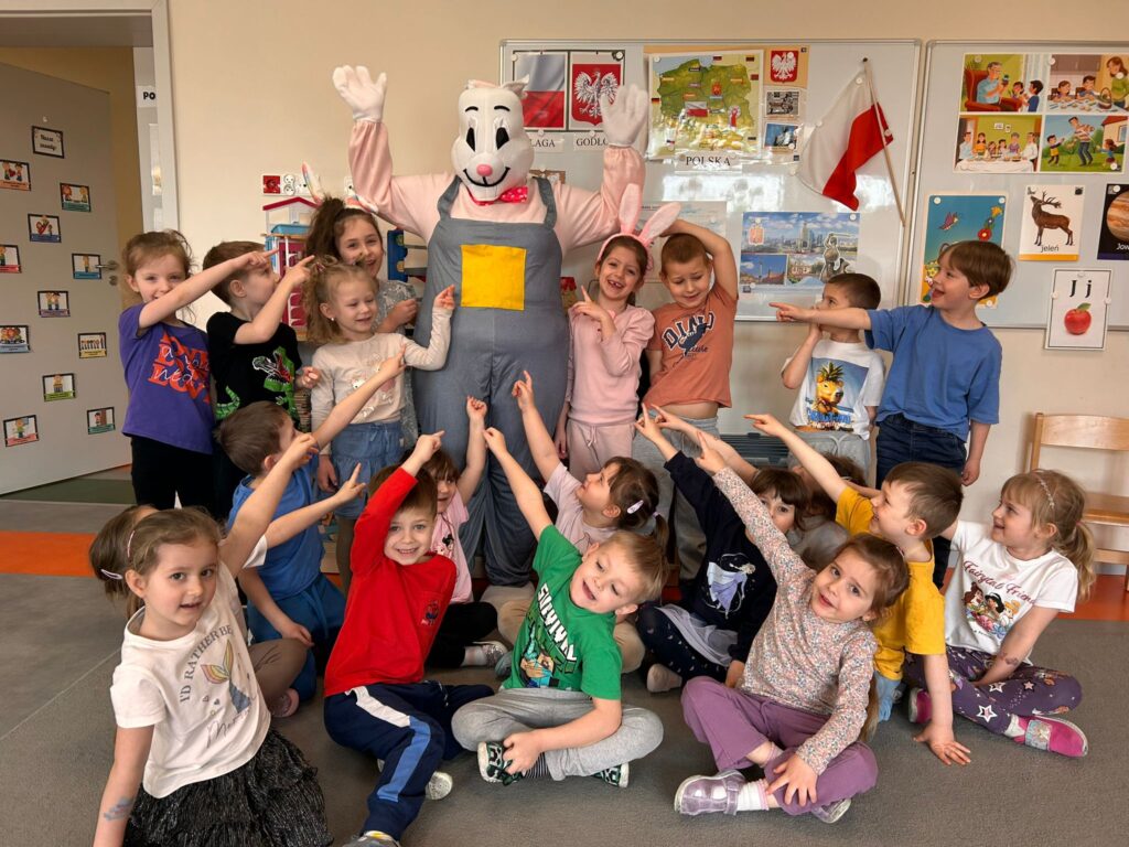 Największą atrakcją była jednak wizyta samego Zajączka Wielkanocnego! Nasz uszaty gość odwiedził, każdą salę rozdając Marchewkowe odznaki i słodkie niespodzianki.
